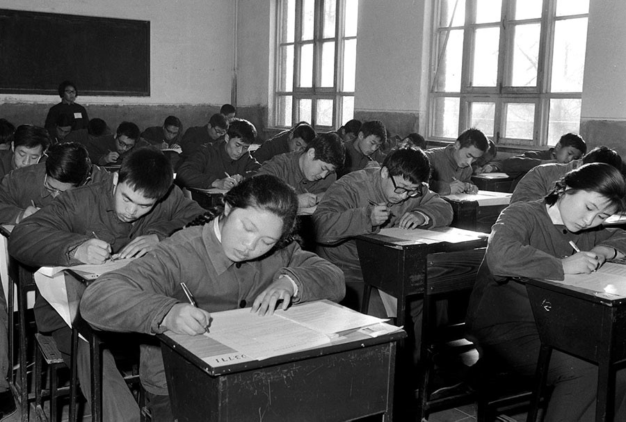 Beijing students take the restored gaokao in 1977.[Photo/Xinhua]
