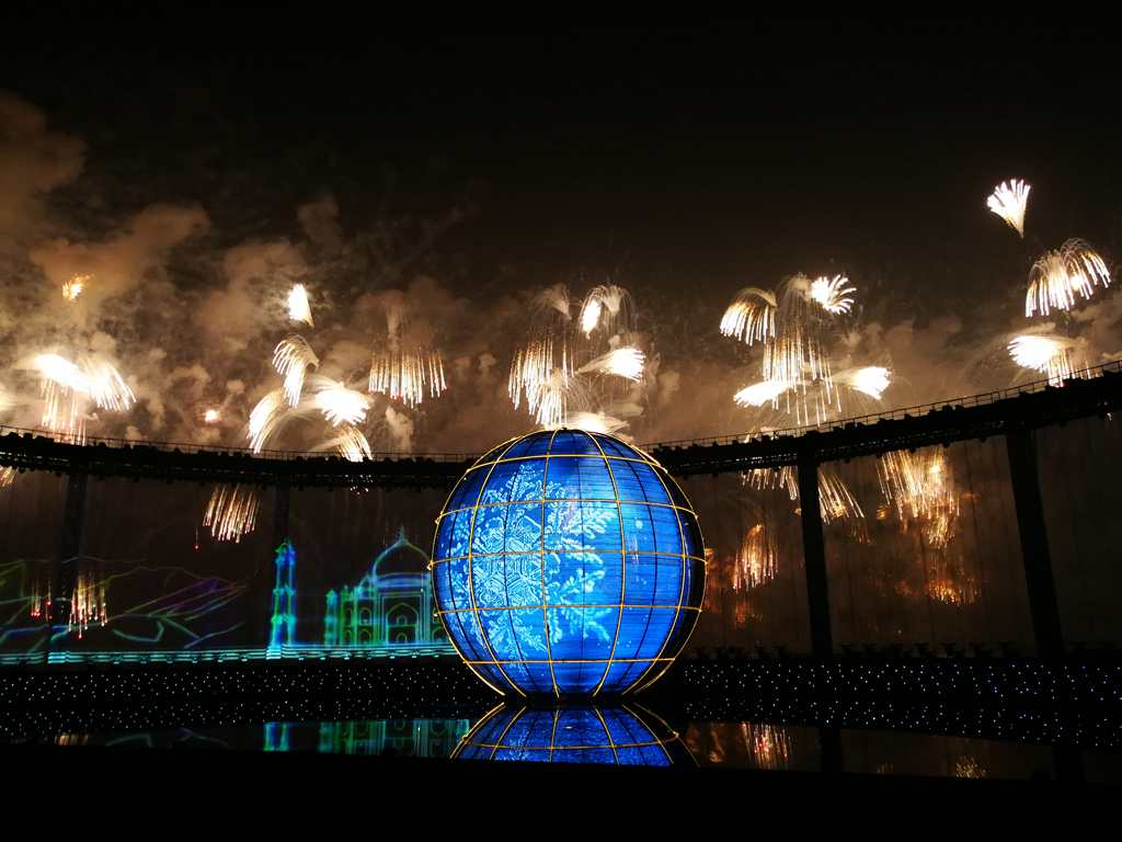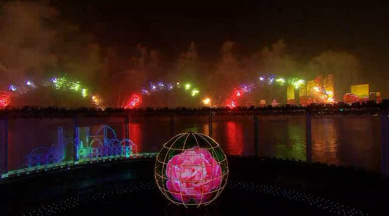 There were two parts for the show: the first was fireworks on the ships, which covered a range of two kilometers. The second was a chain of fireworks 2.4 kilometers along the harbor.