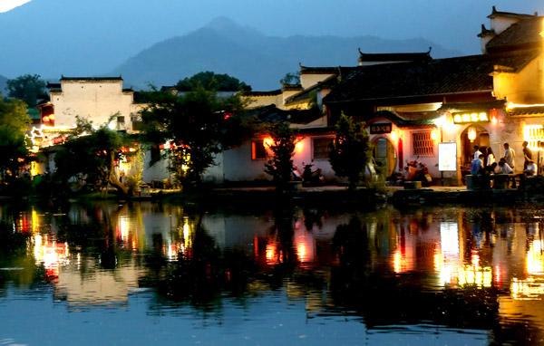Traditional lanterns glow near centuries-old residences in Hongcun Village, near Mount Huangshan, Anhui province, in May. (Photo:China Daily/Wang Hao)