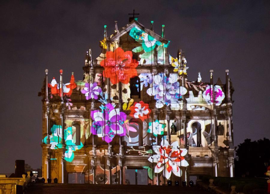 The Macao Light Festival 2017, an annual event put on by the special administrative region's government, was unveiled at the Ruins of St. Paul's on Sunday night, followed by a string of events and festivals to attract tourists. The 17th century Portuguese Church of St. Paul is among Macao landmarks listed as a UNESCO World Heritage Site. (Photo: Xinhua/Zhang Jinjia)