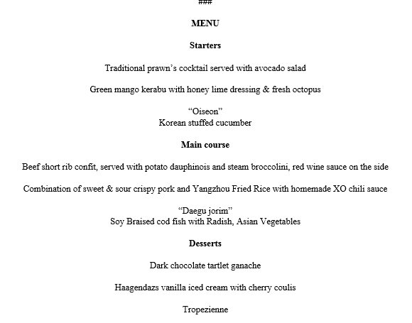 Here's the menu: