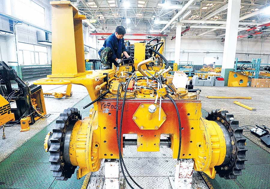 A technician works on a bulldozer at a factory in Zhangjiakou, North China’s Hebei province.[Photo/Agencies]