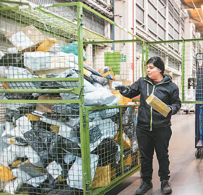 An employee sorts parcels from China at a postal logistics center in Santiago, capital of Chile. Photo from Xinhua News Agency