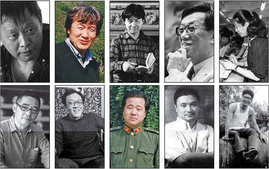 Zhu Wei’s new book, Chong Du Bashi Niandai, features 10 prominent contemporary authors: (clockwise from top left) Han Shaogong, Li Tuo, Yu Hua, Wang Meng, Wang Anyi, Chen Cun, Ma Yuan, Mo Yan, Shi Tiesheng and Su Tong. [Photo provided to China Daily]