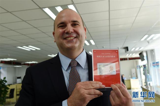 A foreigner shows his permanent residence identity cards in Beijing on June 16, 2017. [File photo: Xinhua]