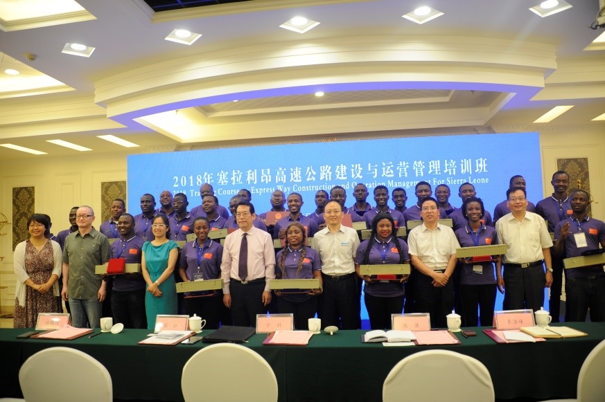 On June 26th, 2018, after 30 days of training, 28 Sierra Leonean professional staff members of traffic management, law, finance, and municipal administration attended their graduation ceremony in Zhengzhou, China, marking the successful conclusion of China-aid training courses of Sierra Leone highway construction and operations and management. The training is a "luminous point" of sustainable development of the company and marks another delightful achievement of localized management measure of overseas projects of CRSG.
