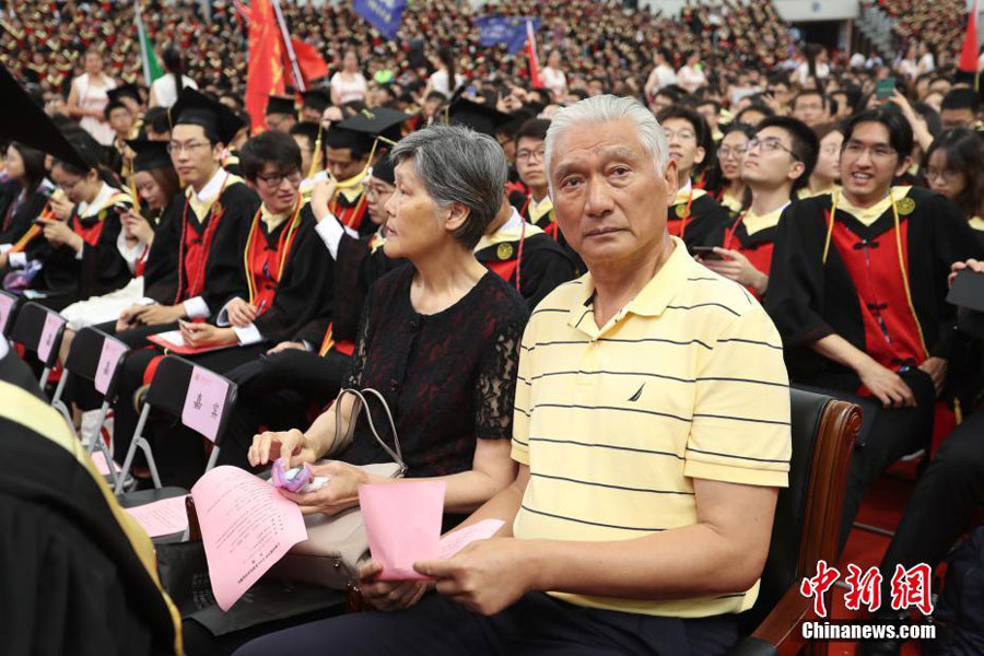 Yao Ming’s parents attend Yao’s graduation ceremony. (Zhang Hengwei/Chinanews.com)