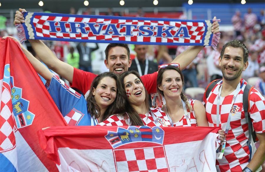 Fans of Croatia cheer prior to the 2018 FIFA World Cup semi-final match between England and Croatia in Moscow, Russia, July 11, 2018. (Xinhua/Cao Can)