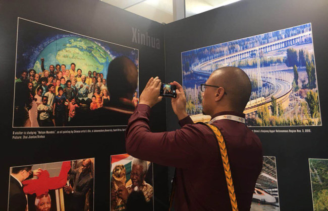 The exhibition, displaying 98 pictures selected by media groups from Brazil, Russia, India, China and South Africa, has been jointly organized by China's Xinhua News Agency and South Africa's Independent Media.
