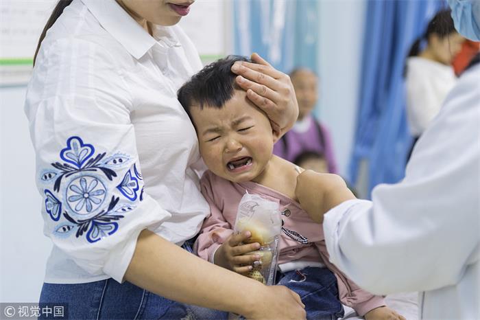 A child is vaccinated in hospital in Southwest China's Guizhou province on April 25, 2018. [Photo/VCG]