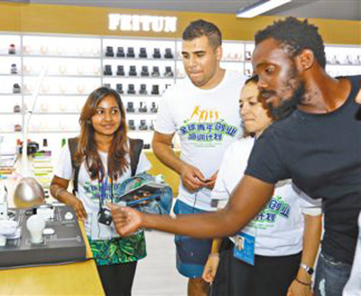 Young entrepreneurs from India, South Africa, Russia and other BRICS members learn start-up experience in Yiwu International Trade City, the primary wholesale market complex in Yiwu, east China’s Zhejiang Province. (Photo: CFP)
