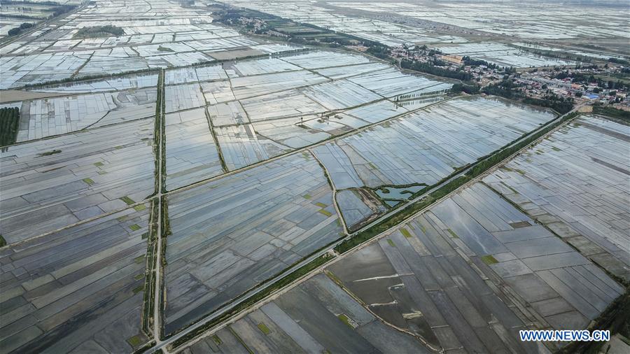 Aerial photo taken on May 21, 2018 shows the road next to fields in Qapqal Xibe Autonomous County, northwest China's Xinjiang Uygur Autonomous Region.