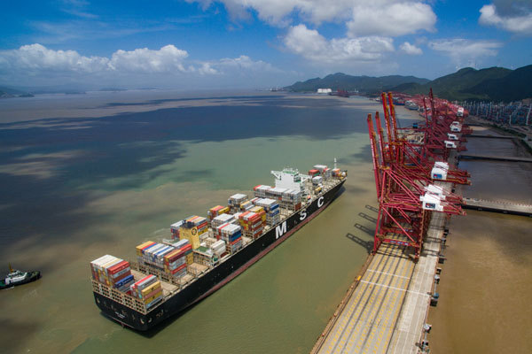 A ship sails through the Ningbo Zhoushan Port. [Photo: China Plus]