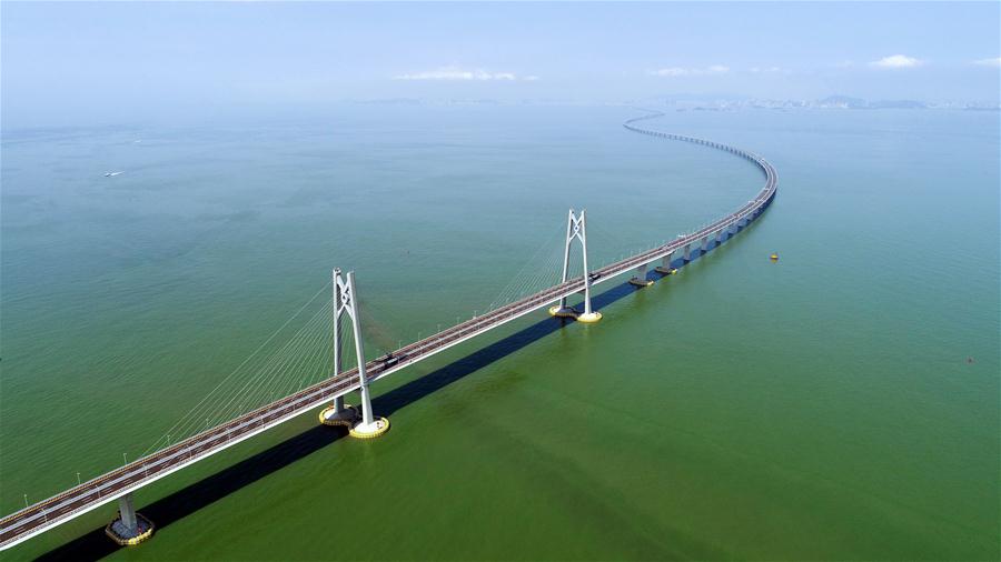 Aerial photo taken on July 11, 2018 shows the Hong Kong-Zhuhai-Macao Bridge. (Xinhua/Liang Xu)
