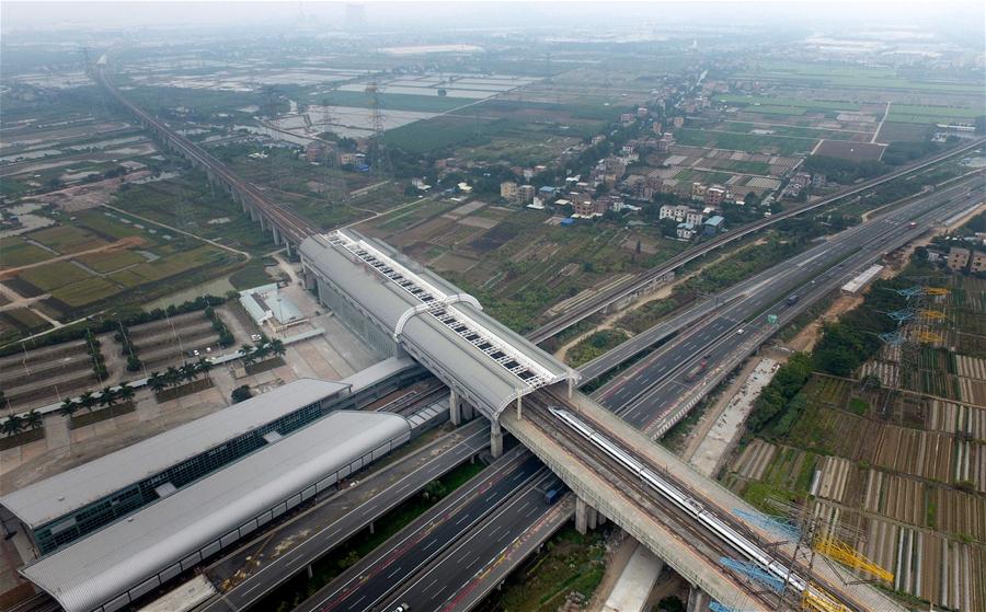 A bullet train enters the Qingsheng Station of the Guangzhou-Shenzhen-Hong Kong Express Rail Link in Guangzhou, capital of south China's Guangdong Province, Dec. 14, 2017. (Xinhua/Lu Hanxin)