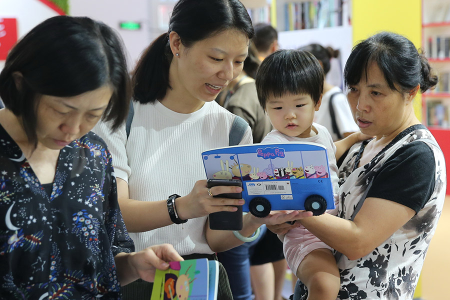 People choose books for their children on Wednesday, the opening of the 25th Beijing International Book Fair. The event runs through Sunday. [Photo by Wang Zhuangfei/China Daily]