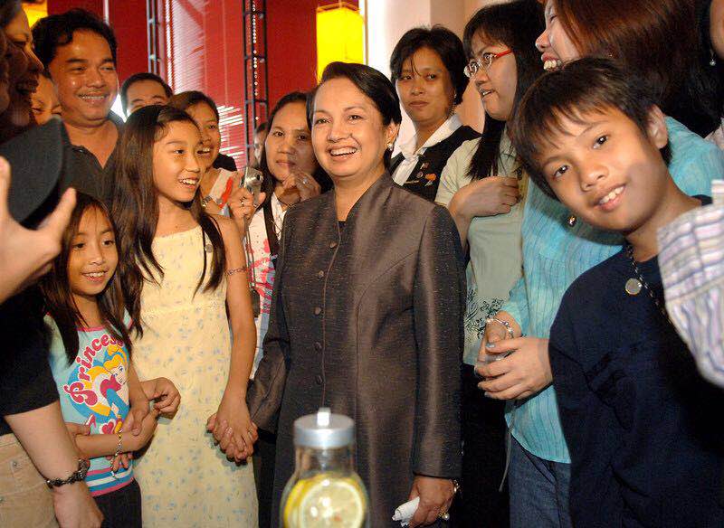 Philippine president Gloria Macapagal Arroyo meets Filipinos living in Chengdu, Sichuan province at a Philippine-invested shopping center in Chengdu on June 6, 2007. SHAO XING/FOR CHINA DAILY