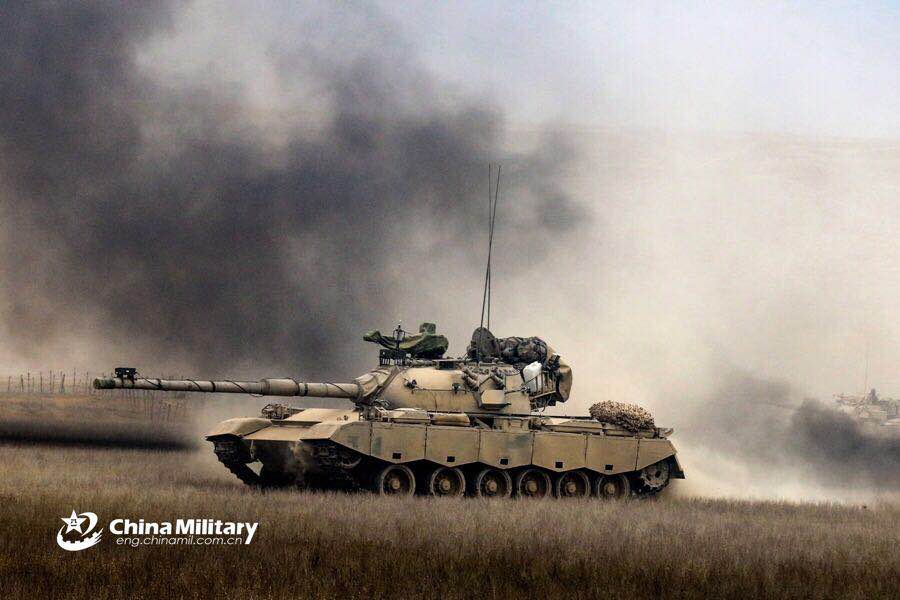A Type-88 main battle tank (MBT) attached to an armored regiment under the PLA Xinjiang Military Command hunts for mock enemies during an actual combat training exercise in the hinterland of the Tianshan Mountains in northwestern China's Xinjiang Uyghur Autonomous Region in late August, 2018. (eng.chinamil.com.cn/photo by Yuan Kai)