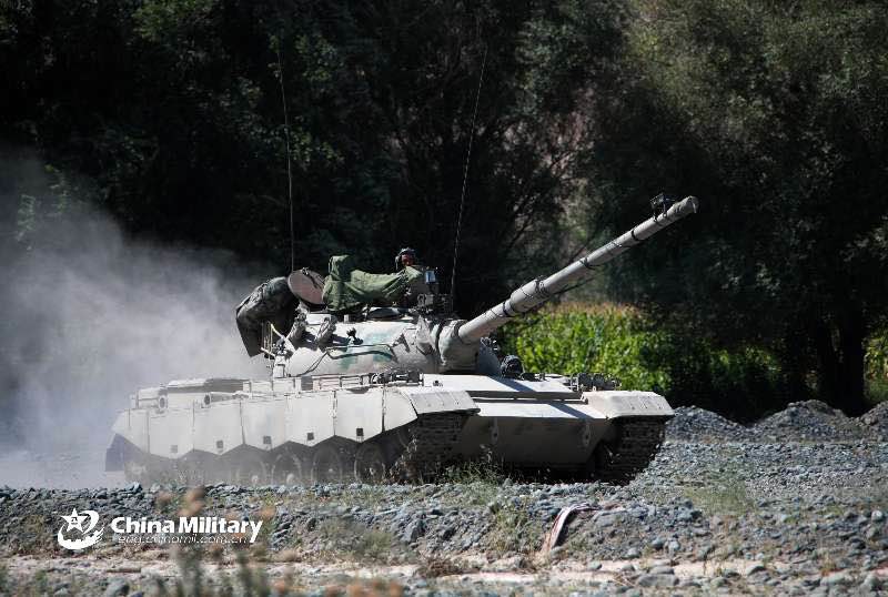 A Type-88 main battle tank (MBT) attached to an armored regiment under the PLA Xinjiang Military Command hunts for mock enemies during an actual combat training exercise in the hinterland of the Tianshan Mountains in northwestern China's Xinjiang Uyghur Autonomous Region in late August, 2018. (eng.chinamil.com.cn/photo by Yuan Kai)