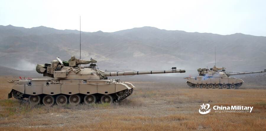 Type-88 main battle tanks (MBTs) attached to an armored regiment under the PLA Xinjiang Military Command maneuver during an actual combat training exercise in the hinterland of the Tianshan Mountains in northwestern China's Xinjiang Uyghur Autonomous Region in late August, 2018. (eng.chinamil.com.cn/photo by Yuan Kai)