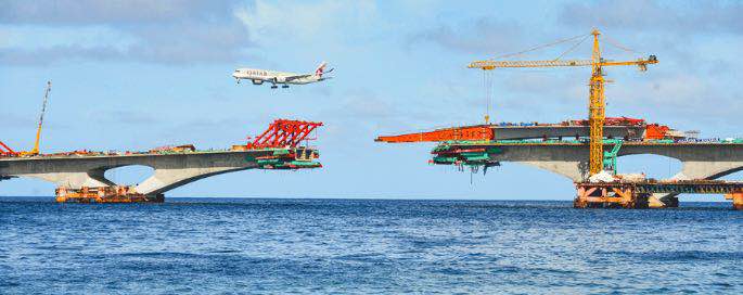 China-Maldives Friendship Bridge, part of the Belt and Road Initiative, nears completion in June. The bridge, in the Maldives, was finished in July. [Photo/Xinhua]