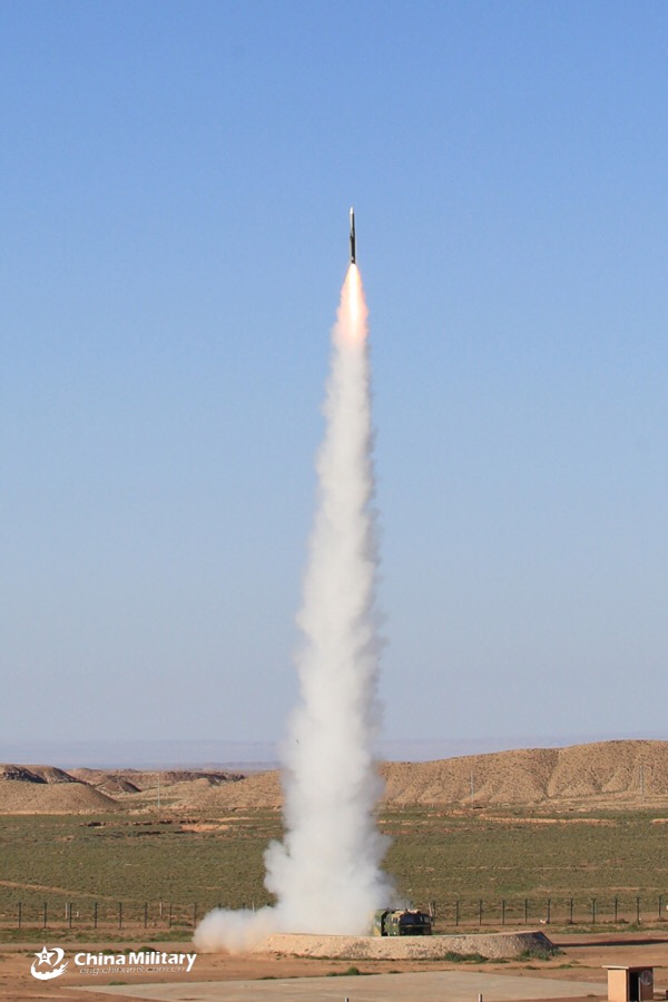 An HQ-16 medium-range air-defense missile system attached to a brigade under the PLA 76th Group Army fires a surface-to-air missile during a live-fire training exercise in northwest China's Gobi Desert in mid-August, 2018. (eng.chinamil.com.cn/Photo by Wang Xiaojun and Zhao Xuanzhu)