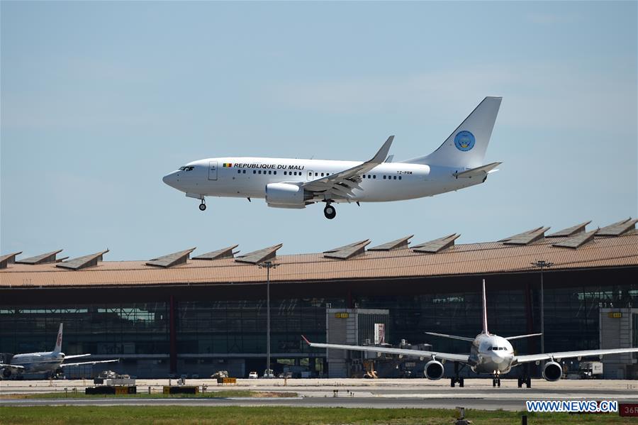 The special plane carrying Malian President Ibrahim Boubacar Keita arrives at Capital International Airport in Beijing, capital of China, Aug. 29, 2018. Ibrahim Boubacar Keita arrived in Beijing on Wednesday to attend the Beijing Summit of the Forum on China-Africa Cooperation (FOCAC). (Xinhua/Ju Huanzong)