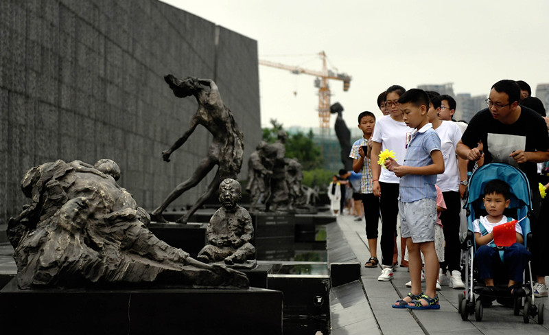 Visitors pay respect to the victims at the Memorial Hall for the Victims of the Nanjing Massacre by Japanese Invaders in Nanjing, Jiangsu province, in July. CUI XIAO/FOR CHINA DAILY
