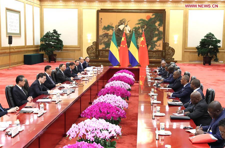 Chinese President Xi Jinping meets with Gabonese President Ali Bongo Ondimba at the Great Hall of the People in Beijing, capital of China, Sept. 1, 2018. (Xinhua/Pang Xinglei)