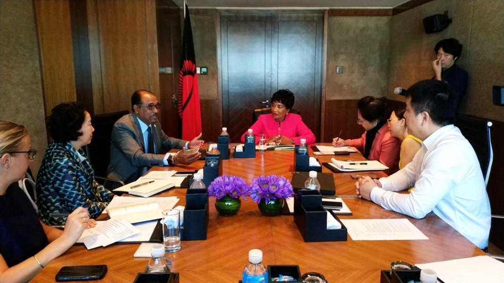 UNAIDS and StarTimes discuss ways to increase HIV/AIDS awareness among young Africans with an online mobile video application, during a meeting held by First Lady of the Republic of Malawi Gertrude Mutharika, UNAIDS Executive Director Michel Sidibé and StarTimes Group Vice President Guo Ziqi, with the theme of “Value of New Media in African HIV/AIDS Prevention Campaign” in Beijing on Monday, Sept 3, 2018.