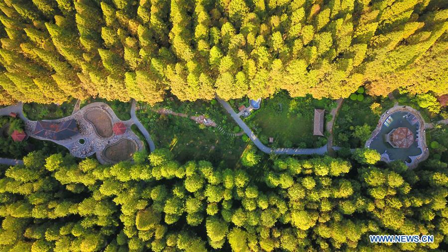 Aerial photo taken on Sept 1, 2018 shows an early autumn scenery of the Hongze Lake wetland in Sihong county, East China's Jiangsu province. [Photo/Xinhua]