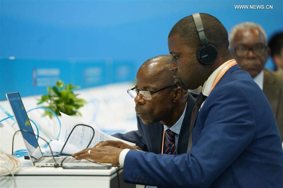 Journalists from the Republic of Congo work at the Media Center of the 2018 Beijing Summit of the Forum on China-Africa Cooperation (FOCAC) in Beijing, capital of China, Sept. 4, 2018. More than 2,600 journalists from home and abroad have registered to cover the forum. (Xinhua/Ju Huanzong)