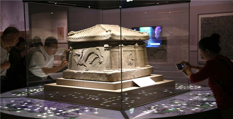 A sarcophagus is decorated with patterns. [Photo provided to chinadaily.com.cn]