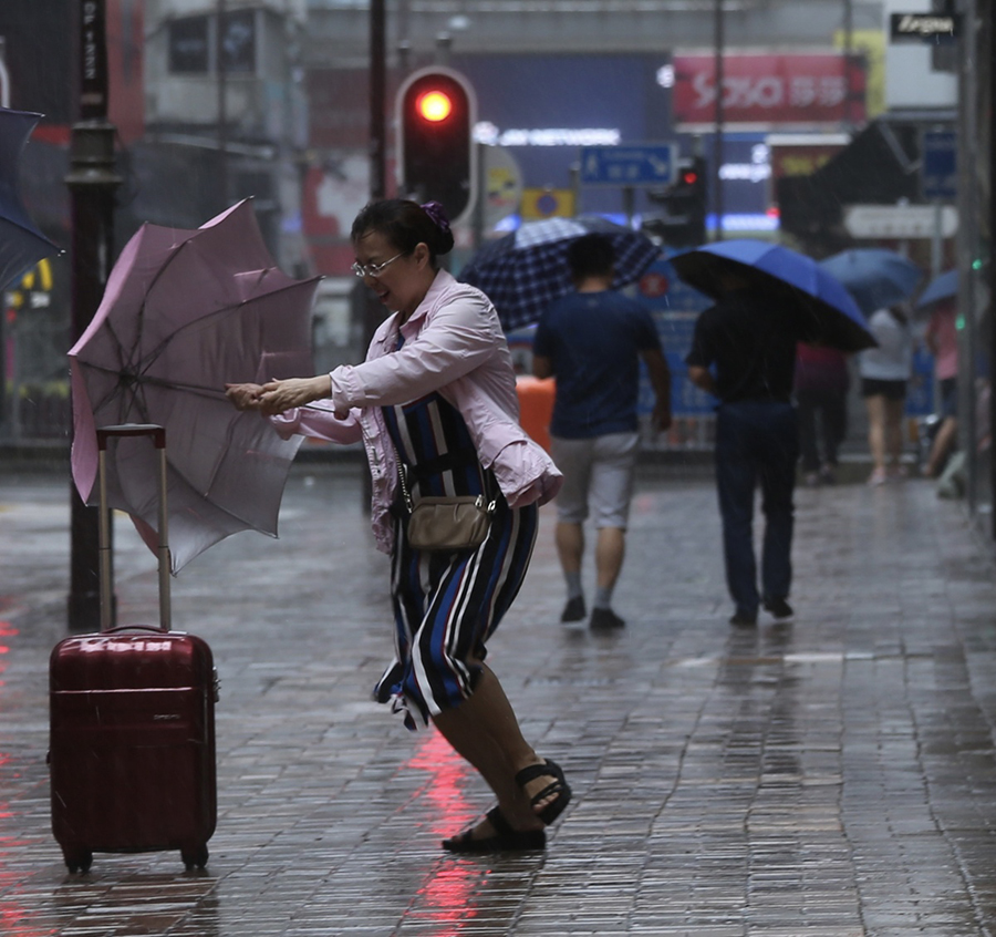The No 10 typhoon warning is raised in Hong Kong Sunday morning. [Photo by Edmond Tang / China Daily ]