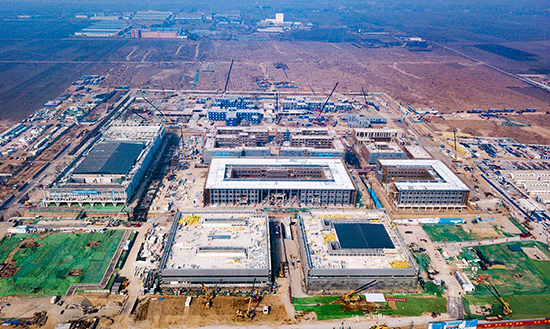 An aerial view of the Xiongan New Area Citizen Service Center, the first major project being built in the area. [CAO XIAOWEN/FOR CHINA DAILY]