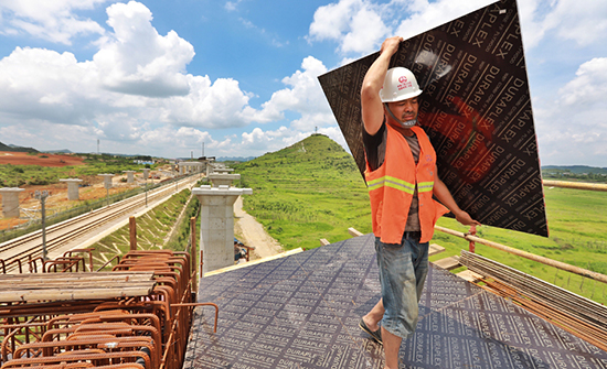 A worker at a bridge construction site in Guiyang, Guizhou province. [Photo/Xinhua]