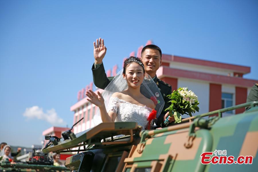PLA Army soldiers take part in a group wedding ceremony on Sept. 27, 2018. Forty-eight pairs of couples had their wedding ceremony delayed due to a military mission. (Photo: China News Service/Liu Yishan)