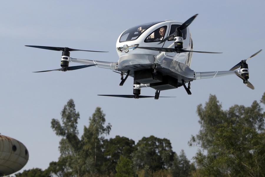 Two and a half years ago, Ehang was virtually unknown in the wider tech world. The company strutted its stuff at the Consumer Electronics Show in Las Vegas in January 2016 and made the bold claim that it would build a completely autonomous, passenger-carrying quadcopter-a multirotor helicopter that is lifted by four rotors-that would "revolutionize" mobility.