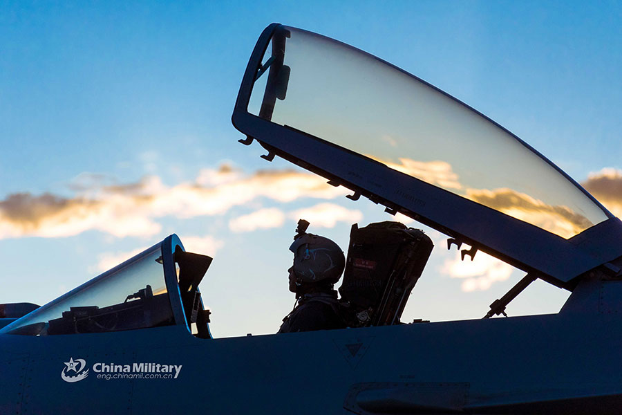 A group of J-10 fighter jets attached to an aviation brigade of the air force under the PLA Central Theater Command sit abreast on the flightline as they receive power-on inspections prior to a recent night flight training exercise. (eng.chinamil.com.cn/Photo by Liu Shaoqiang)