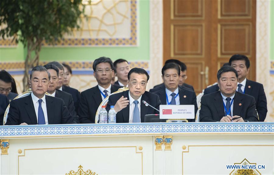 Chinese Premier Li Keqiang (C, front) attends the 17th meeting of the Shanghai Cooperation Organization (SCO) Council of Heads of Government in Dushanbe, Tajikistan, on Oct. 12, 2018. (Xinhua/Li Tao)