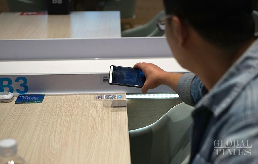 A customer scans a QR code so as to order his food. (Photos: Yang Hui/GT)