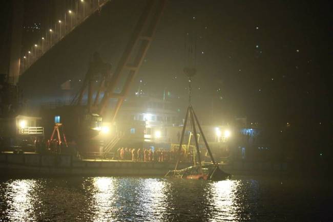 Rescuers salvage the wreck of a bus that plunged into the Yangtze River in Chongqing Municipality on Wednesday October 31, 2018. [Photo: People's Daily]