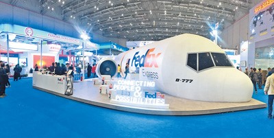Photo taken is the exhibition booth of US logistic giant FedEx at the ongoing first China International Import Expo (CIIE). The company recently launched a package of logistics solutions in China, including one-stop customs clearance services for cross-border retailers. (Photo by Huang Chao from People’s Daily)