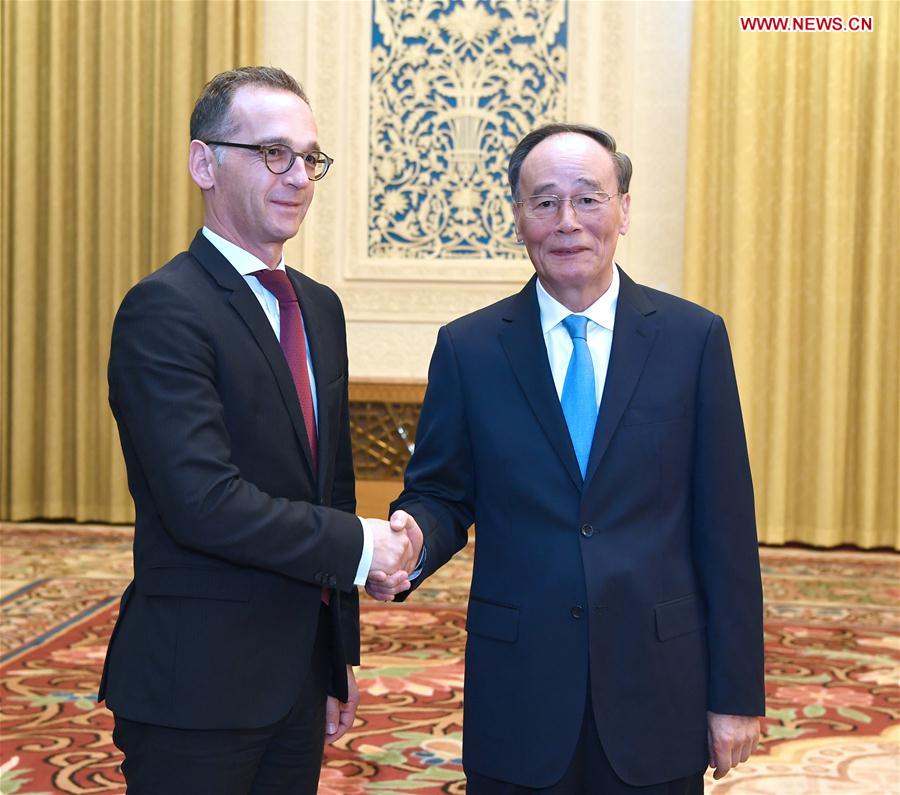 Chinese Vice President Wang Qishan (R) meets with German Foreign Minister Heiko Maas at the Great Hall of the People in Beijing, capital of China, Nov. 13, 2018. (Xinhua/Rao Aimin)