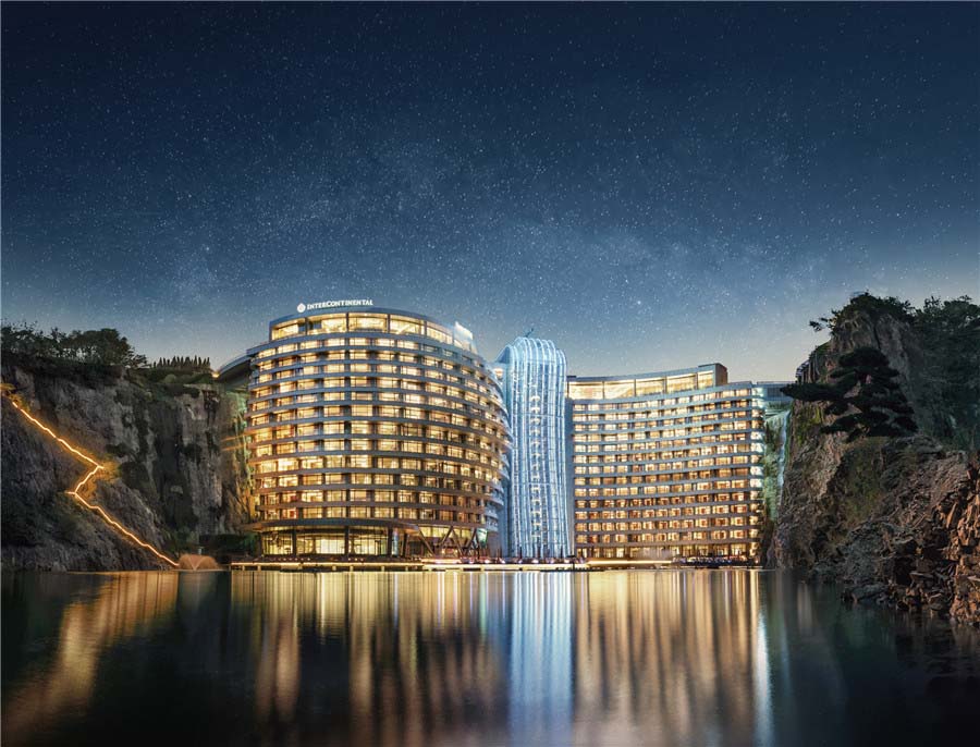 A stunning view of the "Deep Pit Hotel" in Shanghai. [Photo provided to chinadaily.com.cn]