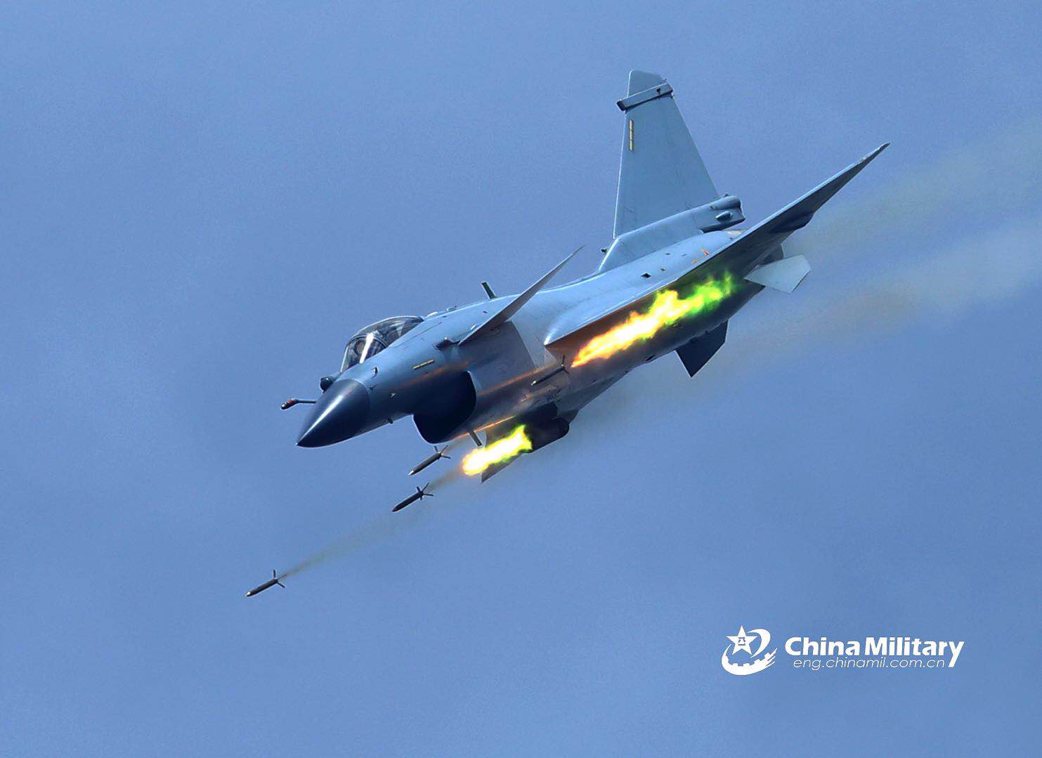 A J-10 fighter jet attached to an aviation brigade with the PLA Air Force fires at mock ground targets as it dives in speed during a live-fire flight training exercise on November 15, 2018. (eng.chinamil.com.cn/Photo by Xue Xiaoling)