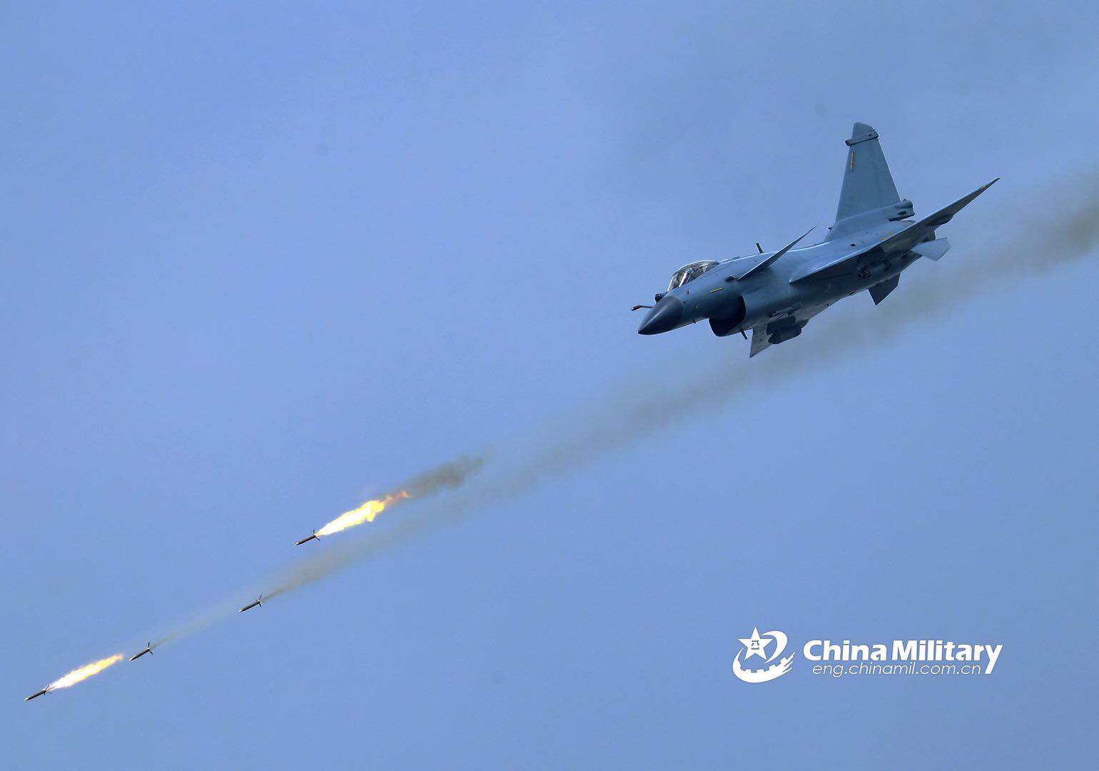 A J-10 fighter jet attached to an aviation brigade with the PLA Air Force fires at mock ground targets as it dives in speed during a live-fire flight training exercise on November 15, 2018. (eng.chinamil.com.cn/Photo by Xue Xiaoling)
