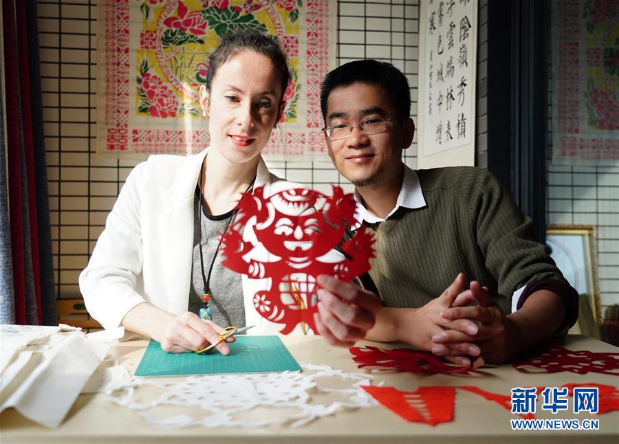 Berenice Zandonai and her husband Huang Zhen check out their products. (Photo/Xinhua)
