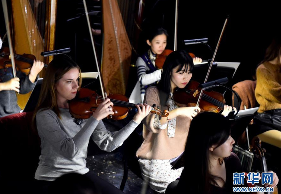 Alexandra in a rehearsal with other members of the orchestra. (Photo/Xinhua)