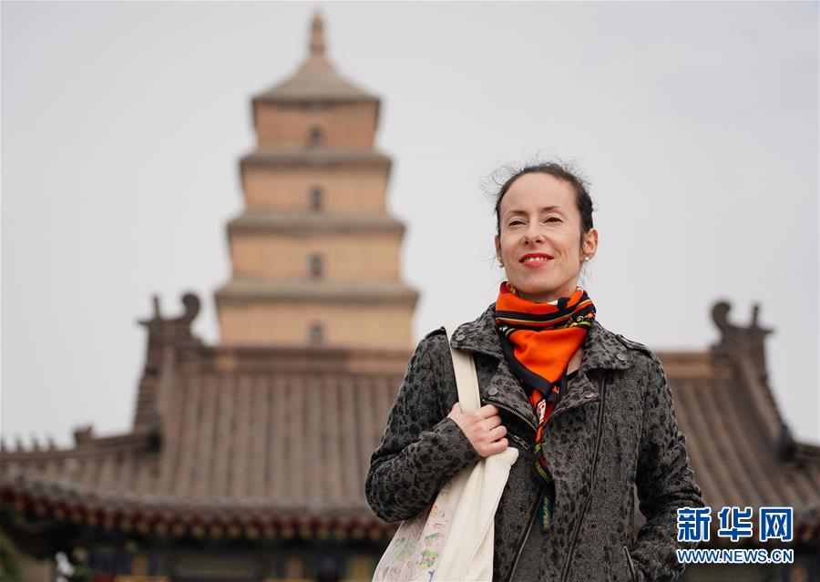 Berenice Zandonai in the Big Wild Goose Pagoda (Dayan Pagoda), an ancient building and a holy place for Buddhists in Xi’an. (Photo/Xinhua)